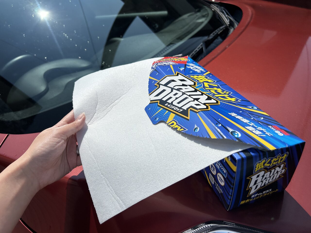 ちなみに、ボディだけでなく、ガラスにも使えて超便利ですが、本当に拭くだけでレインドロップしてくれるのでしょうか?