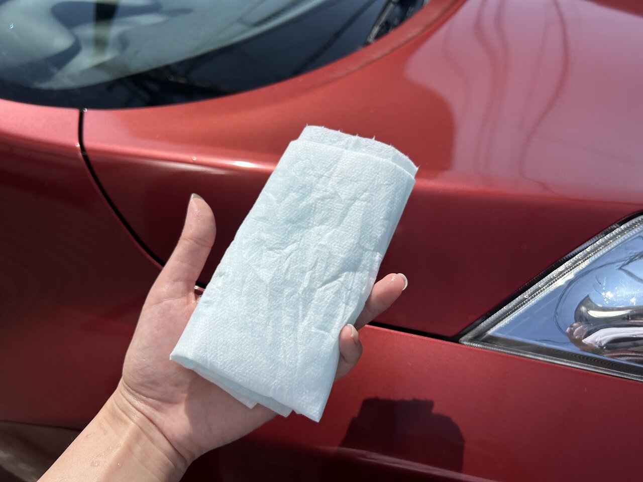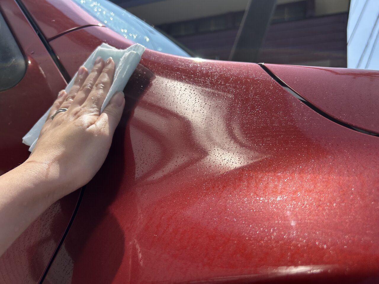 【カーケア】炎天下に洗車機から出た後の「拭くだけレインドロップ」実力をチェック