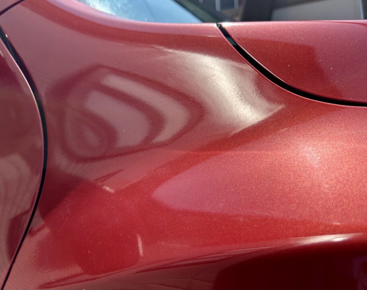 一気に大量の水滴を吸い取ってくれるわけではないのですが、十分すぎる吸水力。あっという間に拭き上げることができました。自然なツヤも出ていて、見違えるように美しいボディになっています。試しに少し強く拭き上げてみたのですが、傷もついていません。