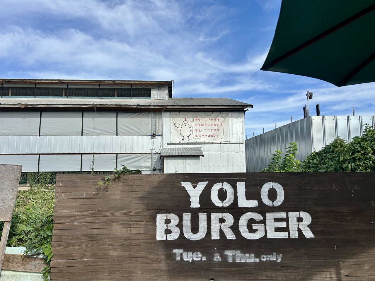 それがこの「YOLO BURGER」(ヨーローバーガー)。見慣れないのもそのはず! 営業しているのは、火曜と木曜だけでした。よくよく案内などを見てみると、卵を生み終えた親鶏の肉を使用したハンバーガーを販売しているようです。