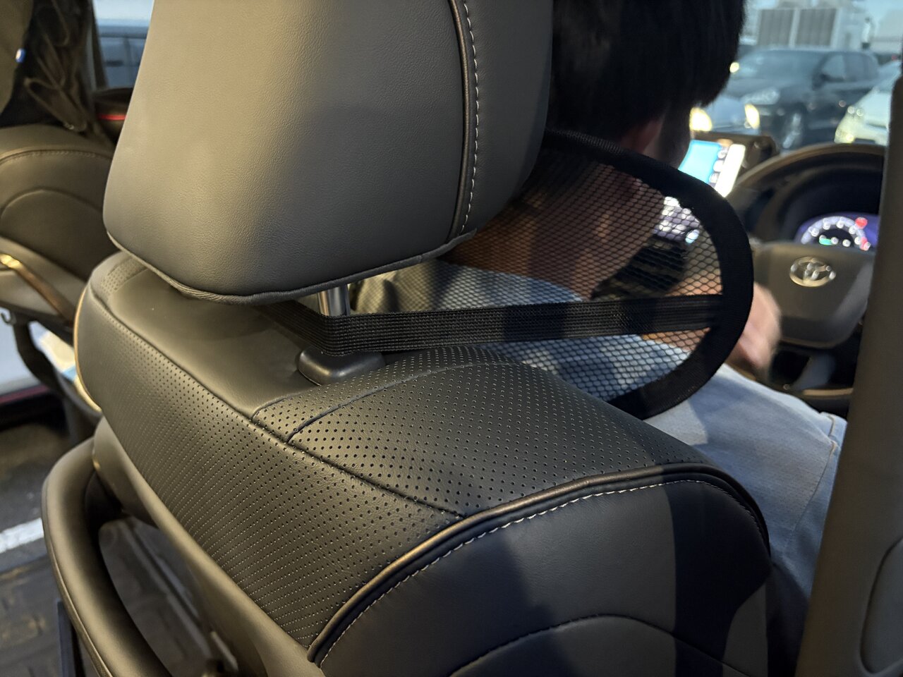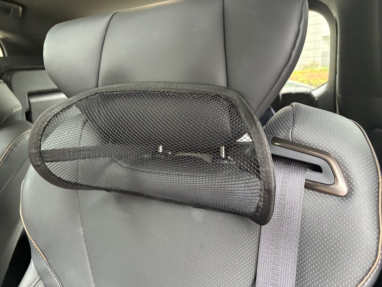 ふわふわではなく、反発を感じる首の支え。取り付けてみると姿勢が整いやすい印象です。首を預けたときにわずかに押し返される感覚があり、その反発が自然と背筋を起こしてくれます。シートに深くもたれすぎず、無理のない姿勢を保てるため、長時間の運転でも肩や腰への負担が軽く感じられました。