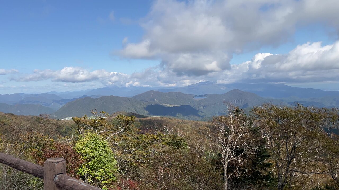 レストハウスからすぐ先にある六方沢展望台に到着。非常に眺めが良くて気持ちが良い場所です。紅葉がピーク時期ではないからか、観光客の数も少なく、空いていました。