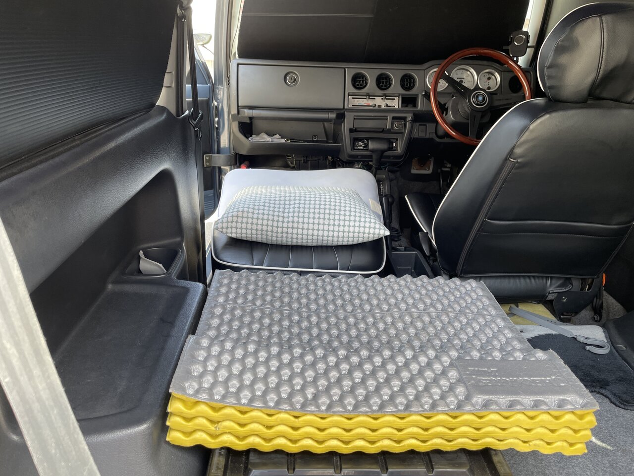 サーマレストのマットを置いたらこのような感じ。色々改善点はありますが、実際に使うのが楽しみ。次回は実際に車中泊に持っていってテストするので、ぜひ楽しみにしていてください。
