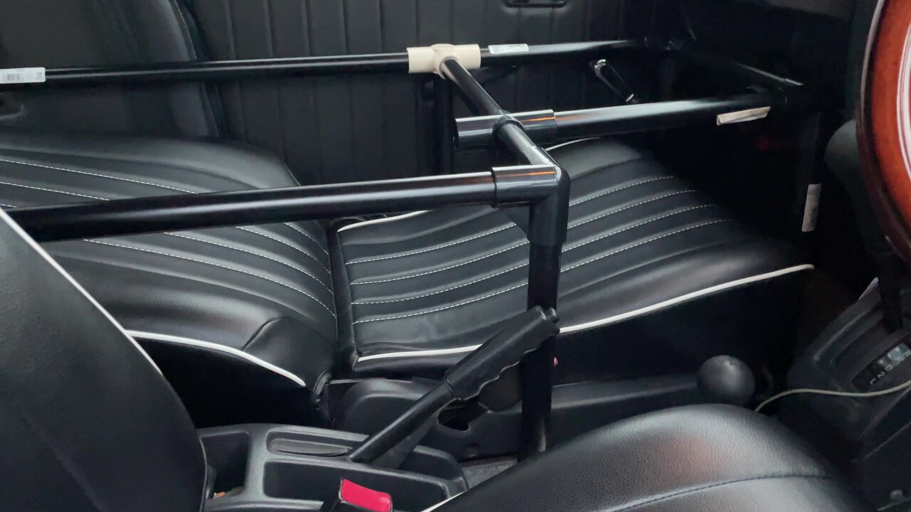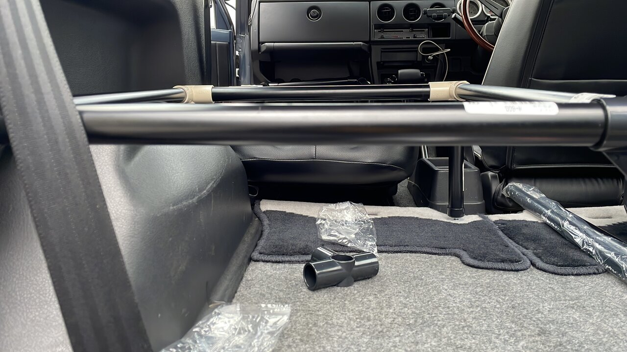 フレーム部分はかなりきれいにできました。フレームを設置した状態でもサイドブレーキやシフトに干渉せず。安定感も問題なし。我ながら非常に良い出来です。