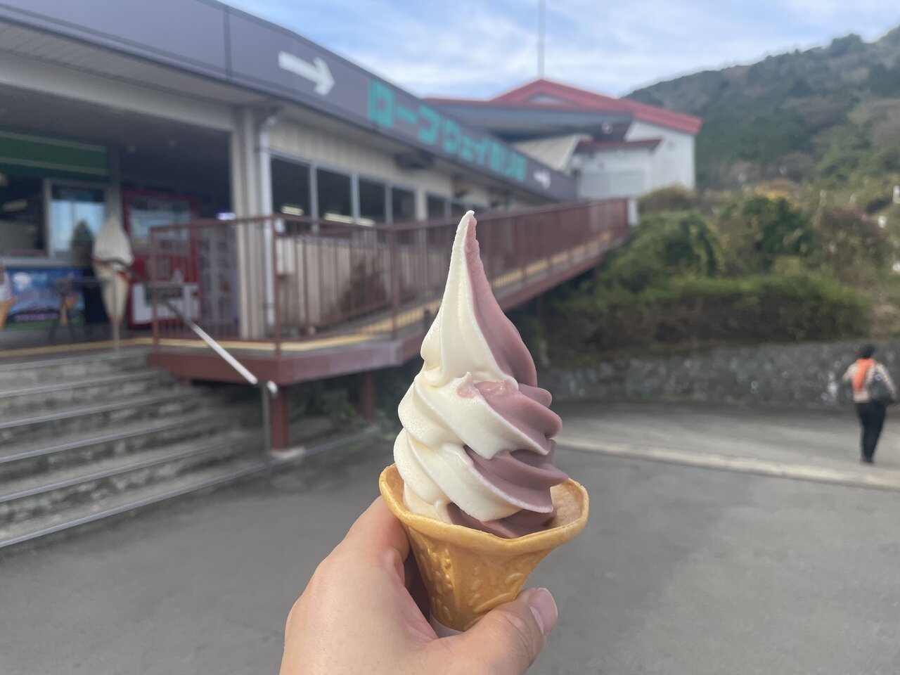外の売店で山ぶどうソフトも購入。最近出かけた先での食事後にソフトクリームを食べるのが習慣になってしまいました。