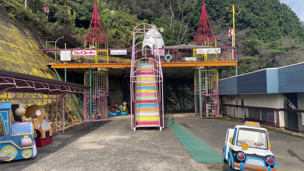 頂上にはガマ大明神なるものがあり、その下には昭和を感じさせる遊具が並ぶプレイコーナーがあります。レトロなスポットが好みの人には刺さりそうな風景。食事休憩と共にノスタルジックな気分になれて、とても魅力的な場所でした。