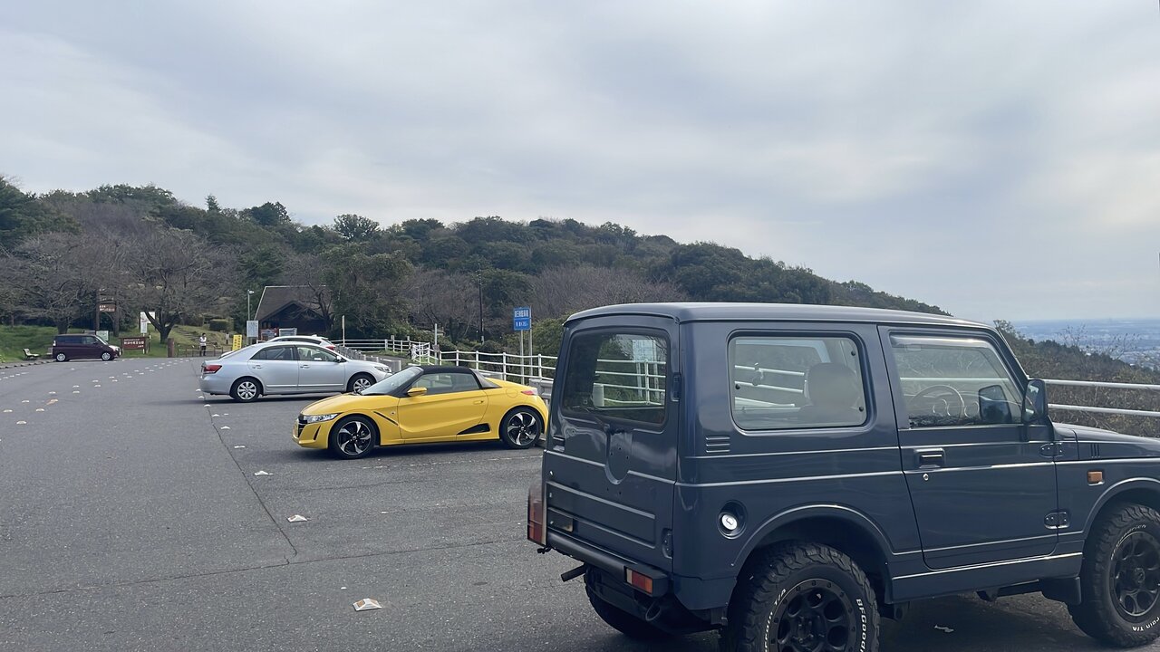 レストハウスから表筑波スカイラインを下って訪れたのは、朝日峠駐車場です。こちらは作中でバトル前に集合していた場所で、この日も同じ目的であろうスポーツカーが数台停車していました。