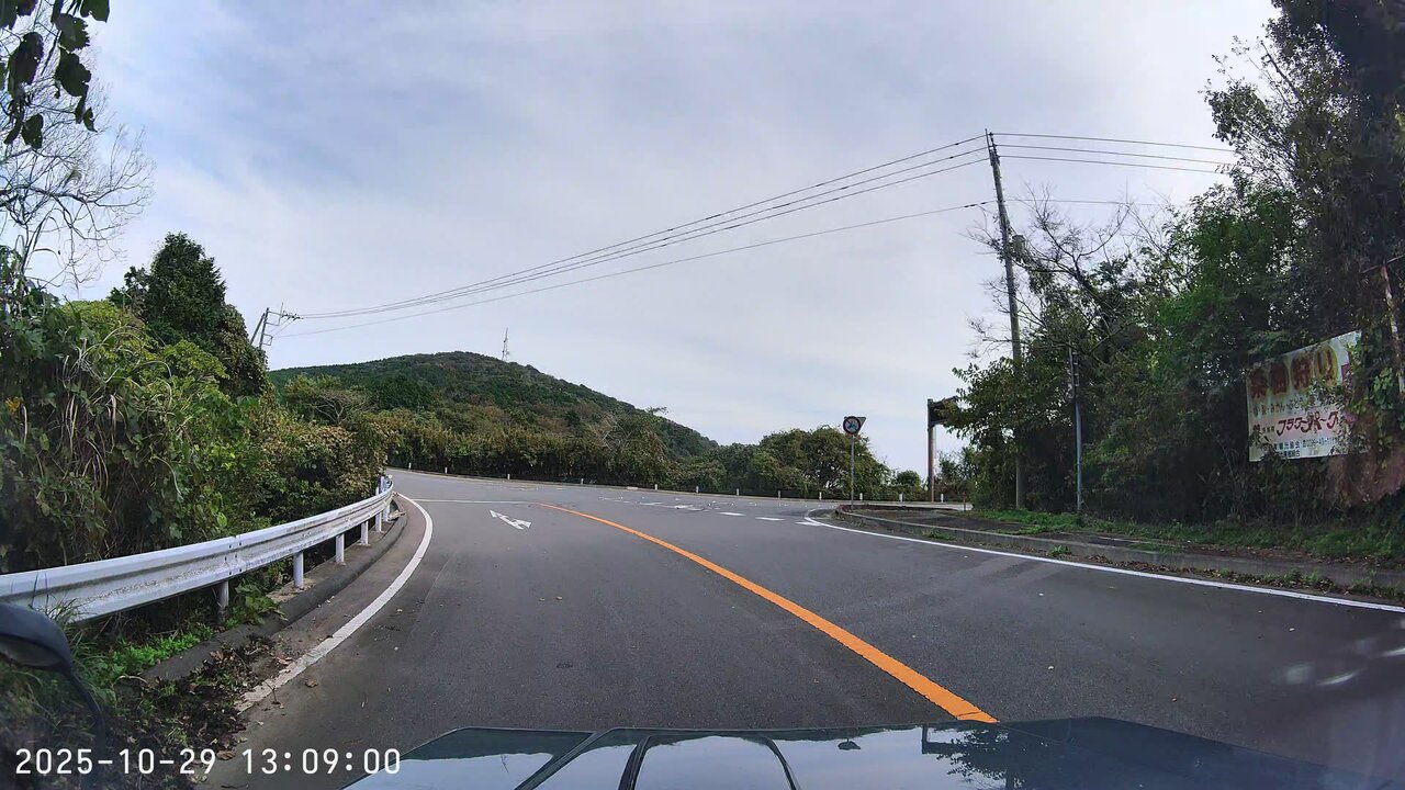 ほんの数分でクライマックスシーンの舞台となった、連続S字コーナーが現れてきました。作中では藤原拓海の溝落としや側溝ショートカットが行われていた区間で、確かにそれらしい路肩の形状が見られます。