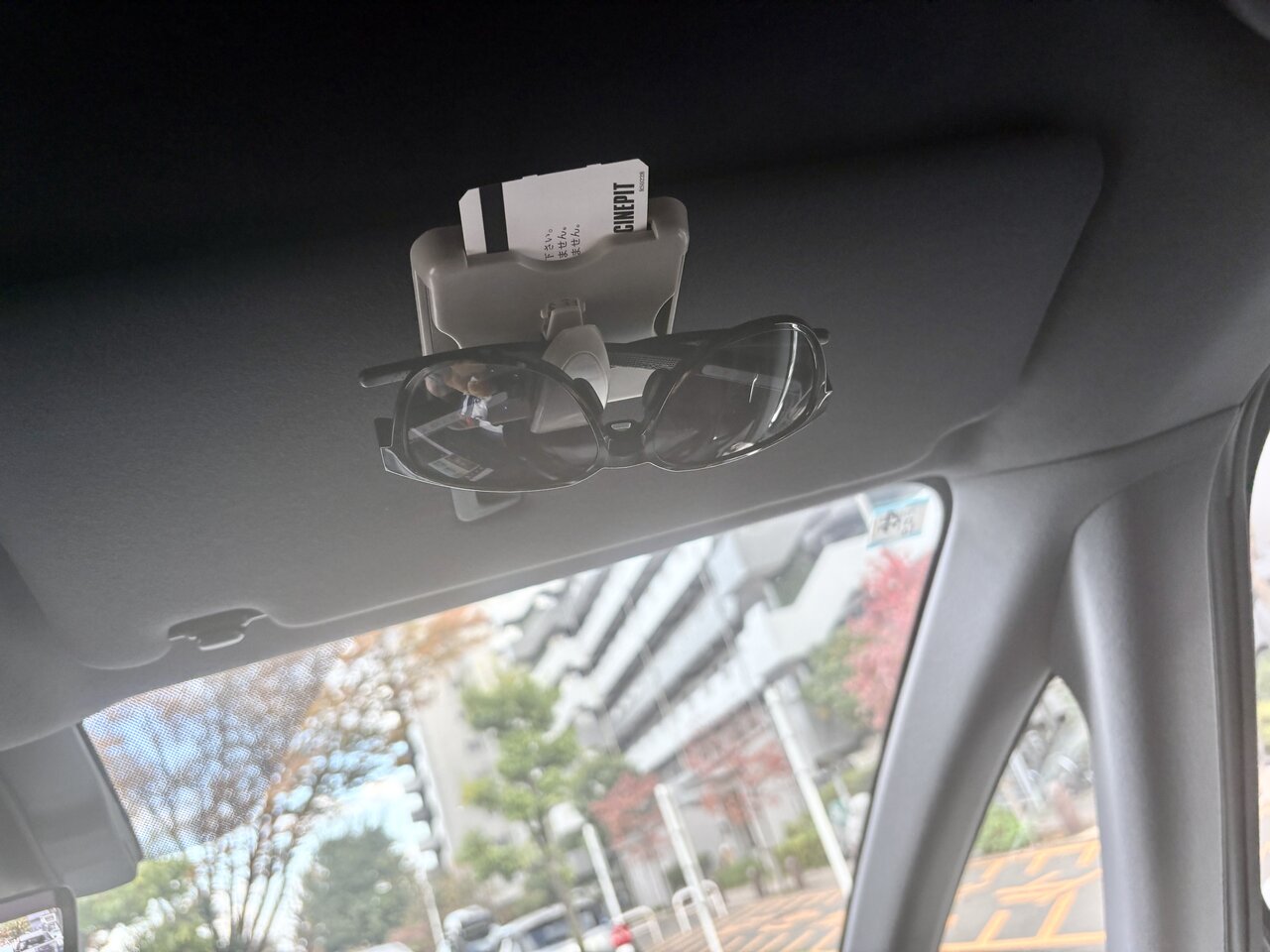 昼間の運転ではサングラスが欠かせず、使わない時の置き場に毎回迷っていました。ダッシュボードに置けば滑って落ちる。ドリンクホルダーに入れたら取り出しにくい。