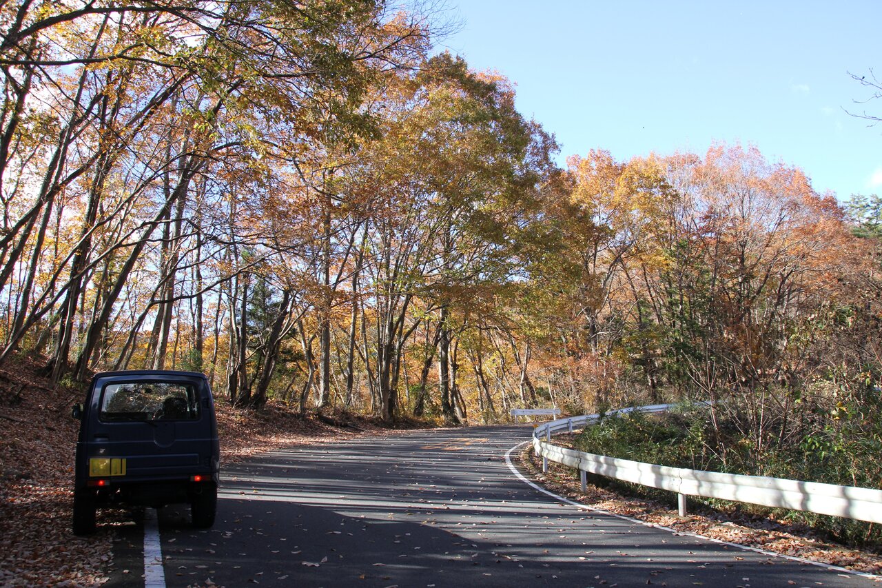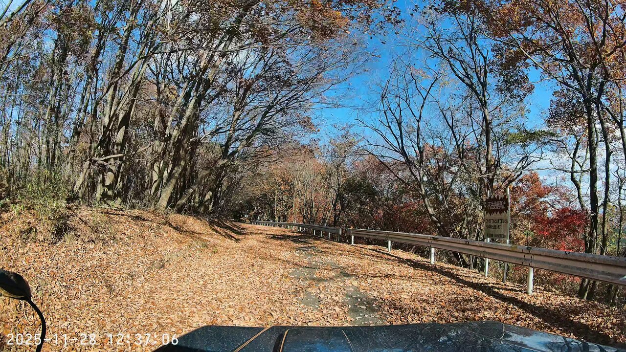 この付近の路面には紅葉終わりでフカフカの落ち葉の絨毯が広がっていて、走るとサラサラ乾いた葉が動く音がしていました。紅葉が終わり本格的な冬がやってくる。季節の移り変わりを感じながらのドライブです。