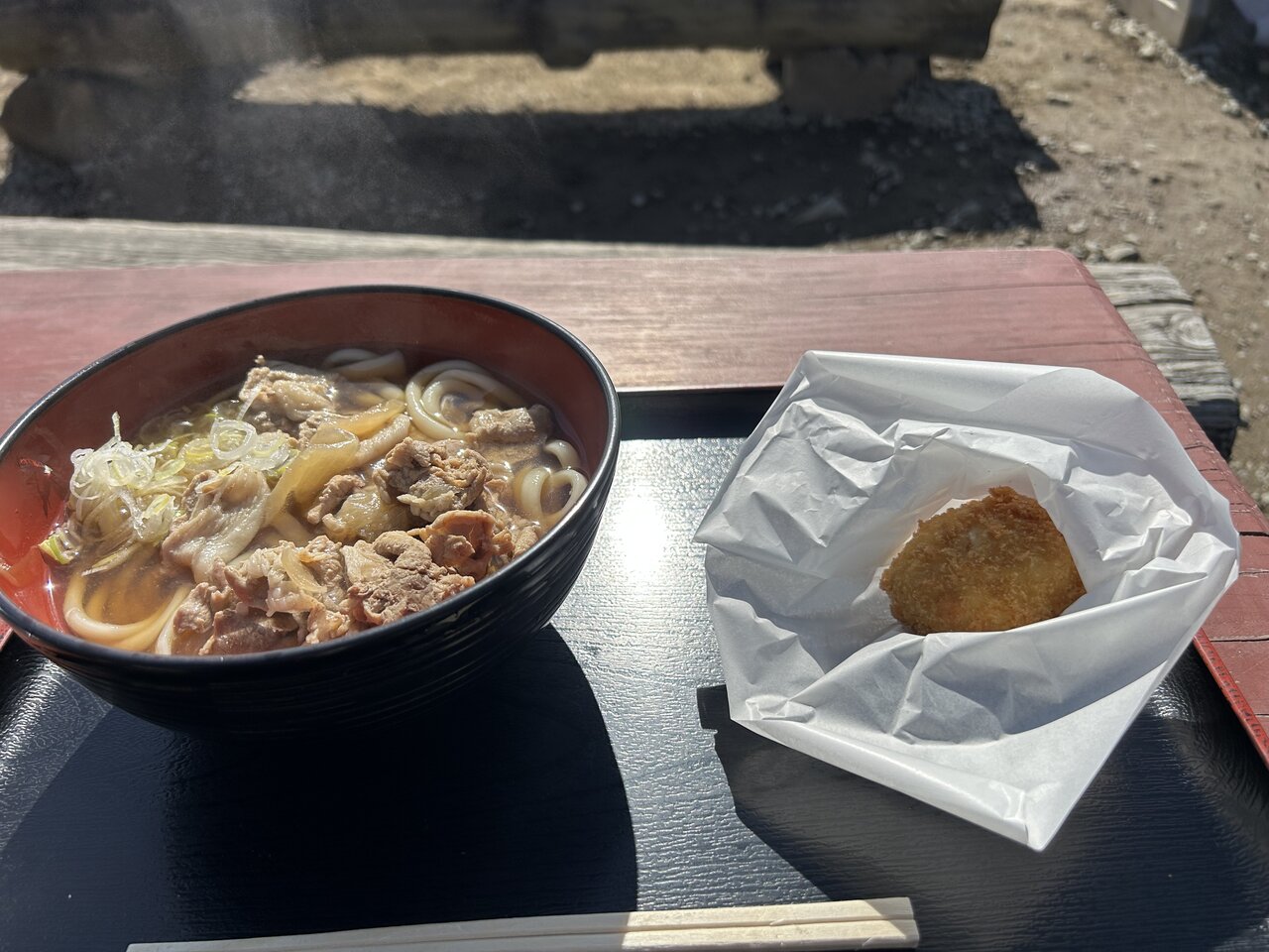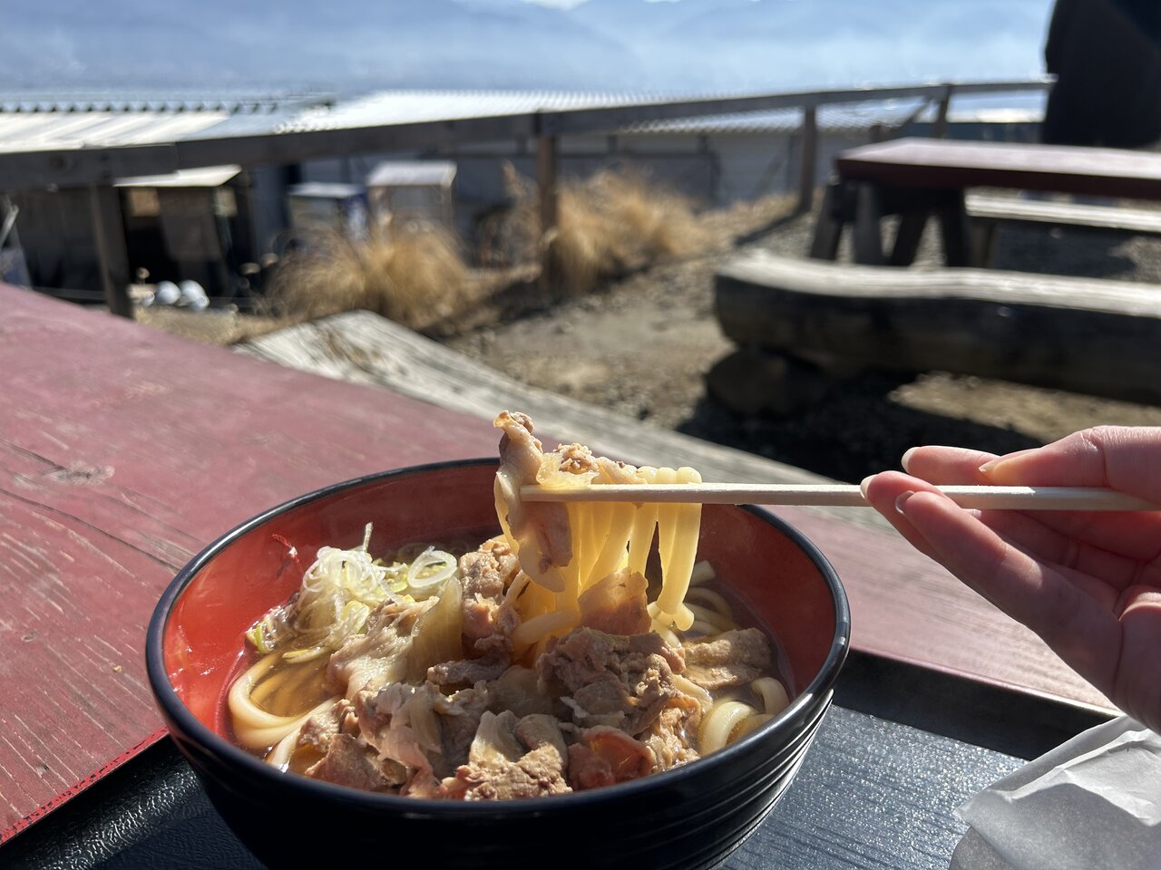 いや〜。肉うどんの美味しさもさることながら、この絶景を眺めながら食べられるというのはなんとも贅沢。こんな幸せなひとときを味わえるなんて。この時ばかりは日常のあれこれを忘れて、ただ目の前に広がる雄大な富士山と肉うどんをを堪能しました。