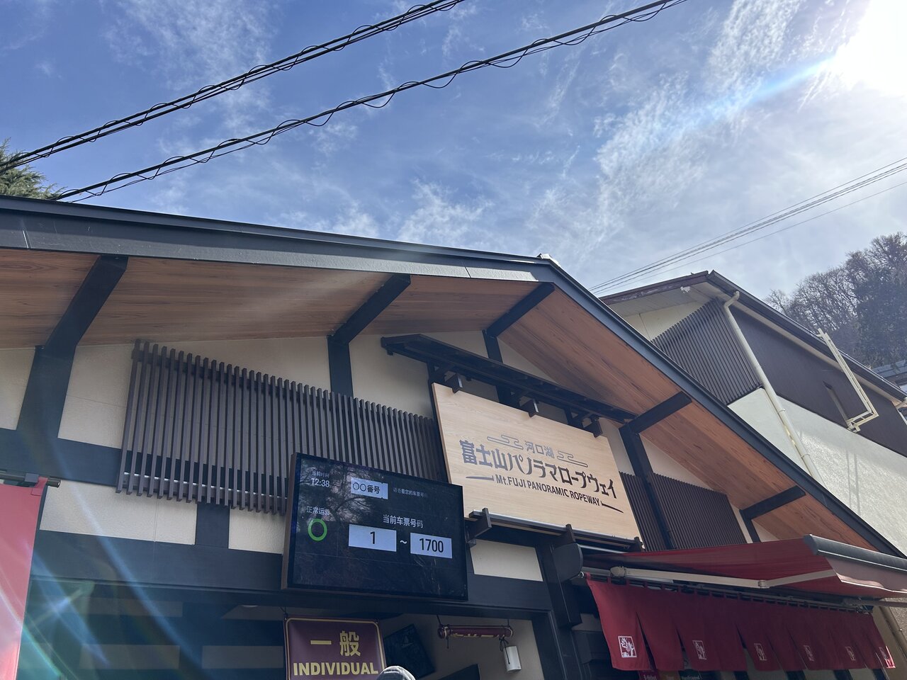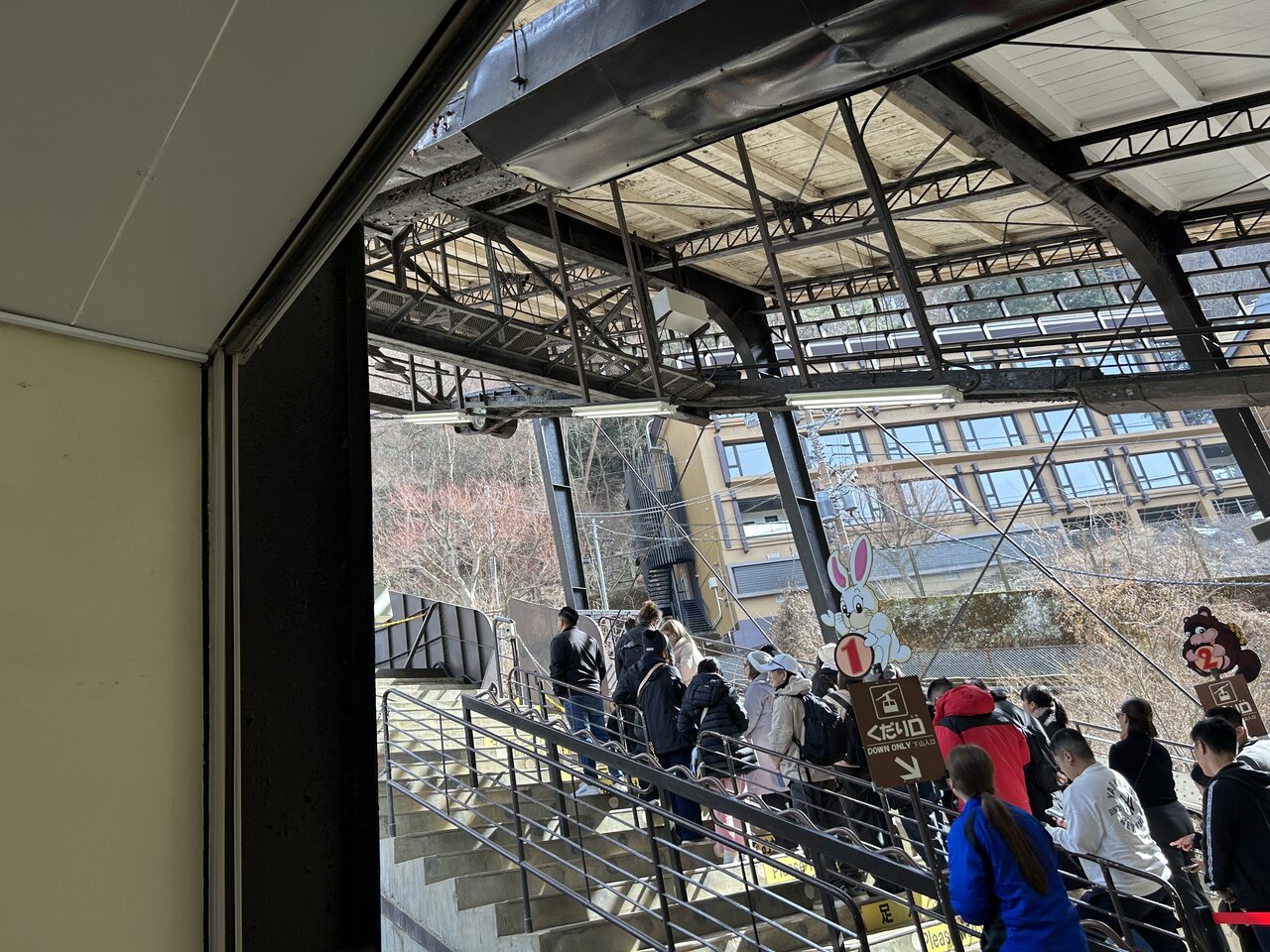 散策を終えて戻ると、ちょうど良い時間に。いよいよロープウェイ乗り場に向かいます。やはり混んでいましたが、想像以上に運行間隔が早いようです。