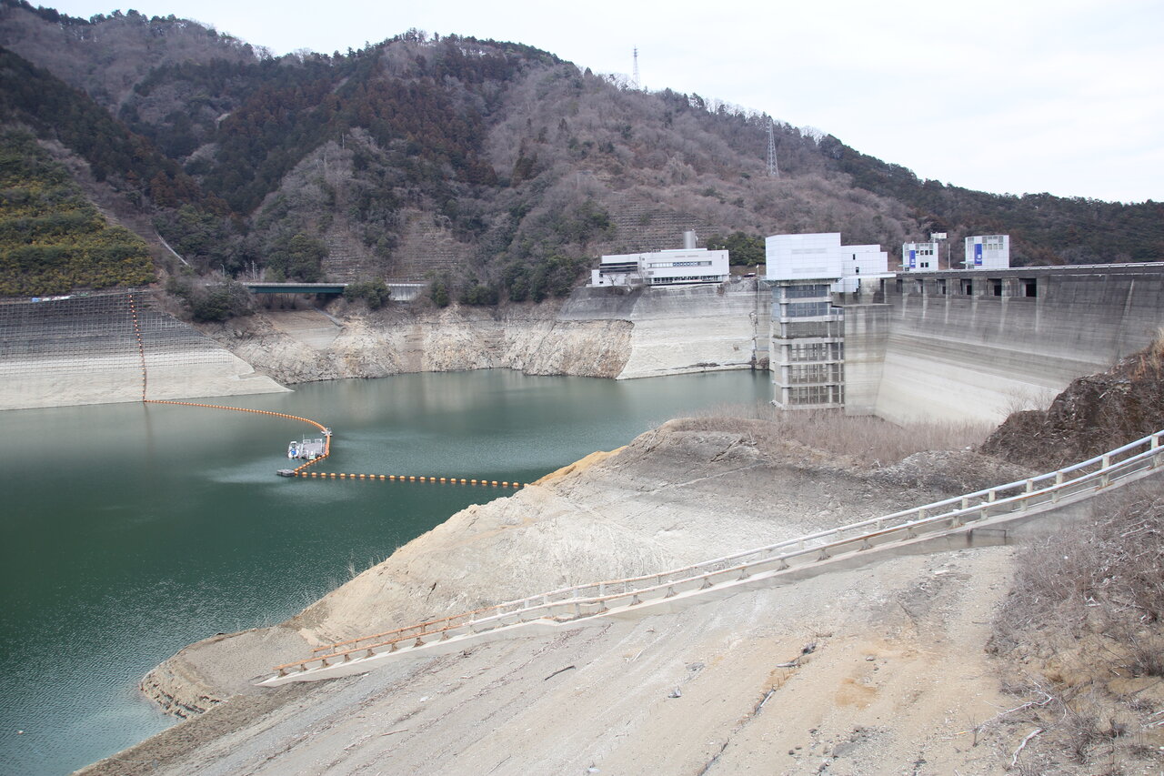 この日のダムは例年より非常に低い降水量の影響で、満水から約32m水位が低下するという過去最低の貯水量を更新(2026年2月13日現在)。そのような歓迎すべき状況ではない中、SNS上では湖底に沈む「旧道があらわれた」という話題で、さまざまな撮影画像が投稿されています。