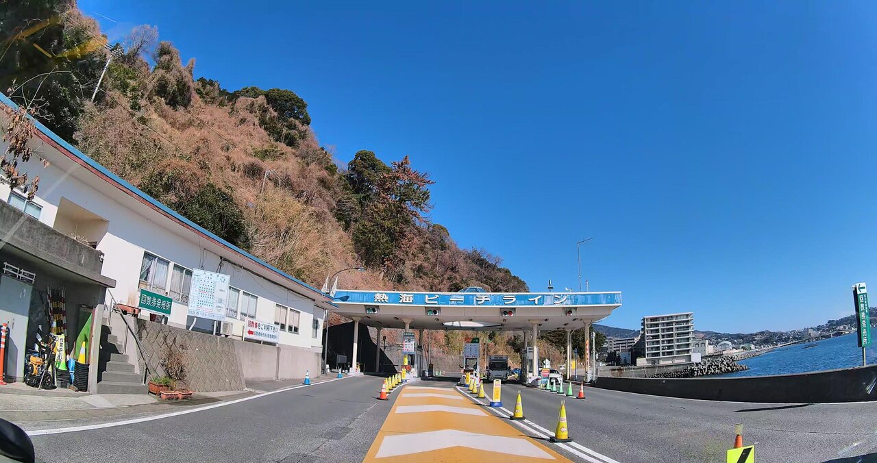 熱海ビーチライン料金所まで来ました。入口では料金を支払いませんでしたが、ここで500円(軽/普通自動車)支払います。この先の交差点が折り返し地点です。