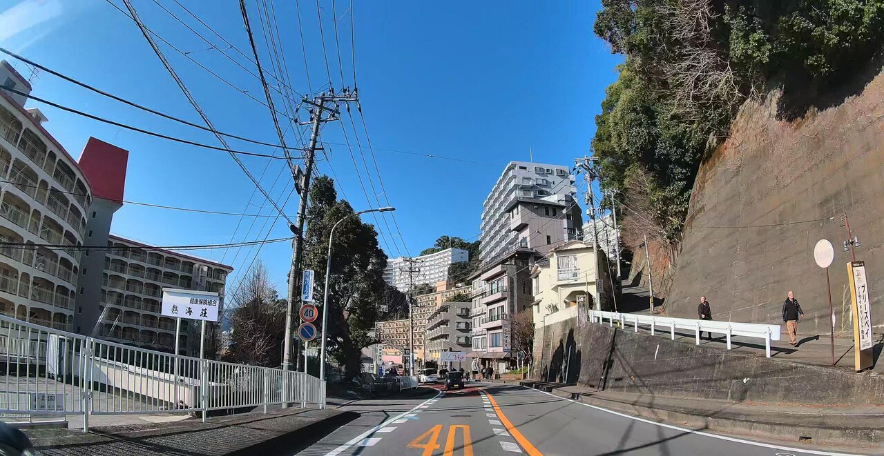 熱海を象徴するようなリゾートマンション群の先に最終コーナー。一度このようなところに住んでみたいです。