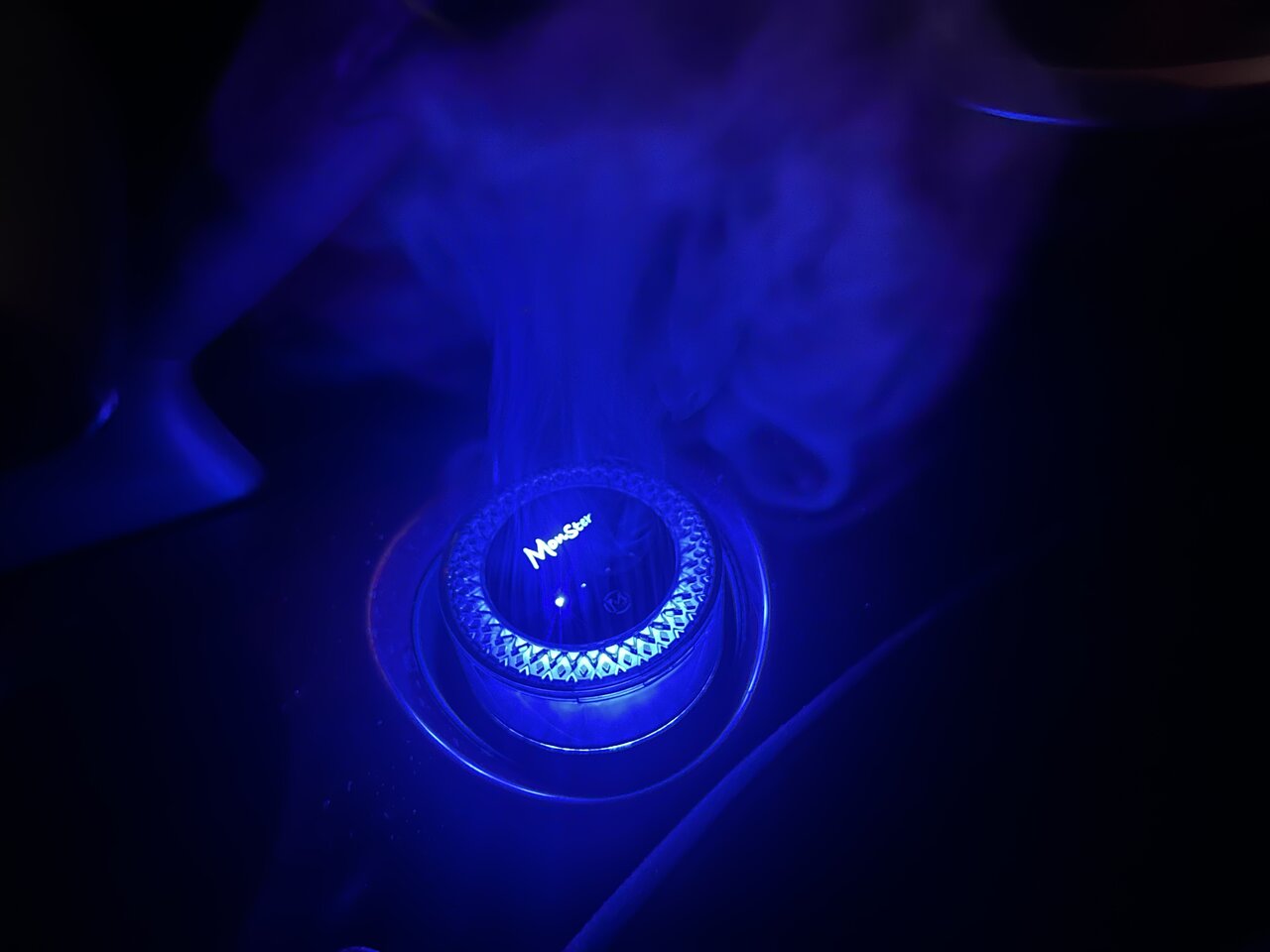 エンジンをかけて電源がONになると、アンビエントライトが光り、視覚的にすぐ分かるミストが出てきました。一気に噴き出す様子は圧巻で、初めて使った時は、思わず「おぉ!」と声が出てしまったほど。このミストが見えるので、見た目にも香りを楽しめるところが楽しい。