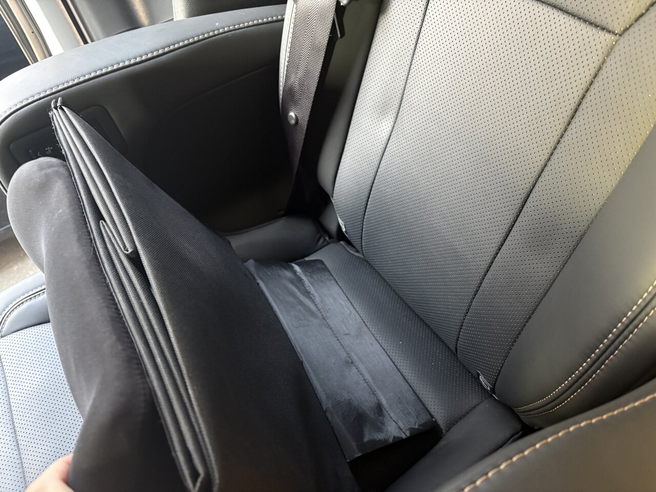 さらに、座席の隙間に差し込んで固定する仕様になっているため、走行中もズレにくく、ブレーキやカーブのたびに荷物が動くストレスもありませんでした。
