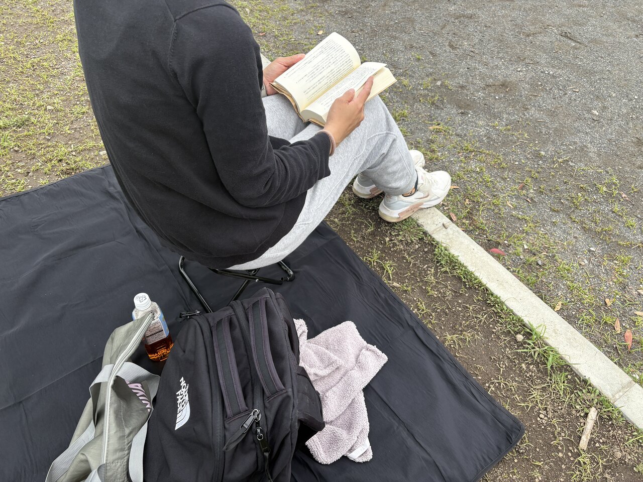 公園に立ち寄り、収納道具を取り出してチェアリング。準備にはクルマのBOXから中身を取り出すだけなので、ちょっとした時間でも簡単にできるようになりました。以前は「準備が面倒だから今日はいいか」と思っていたような時でも、自然と行動に移せます。