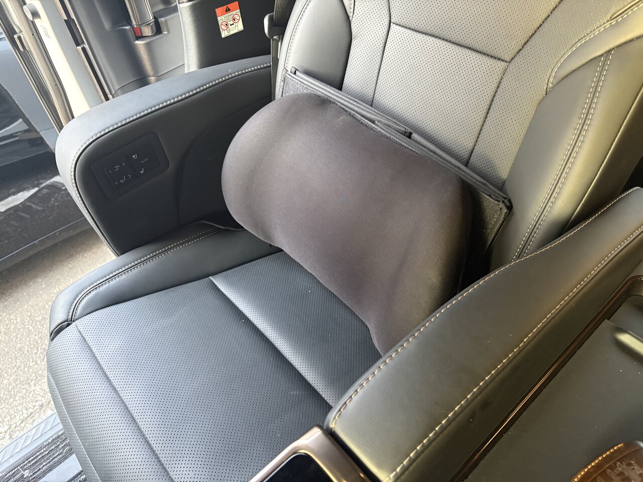 腰あてにはちょうど良い感じ。どういう時でも「使うときだけ出す道具」ではなく、「常に車に置いておける状態」であることが、このクッション+ボックスの価値だと感じました。