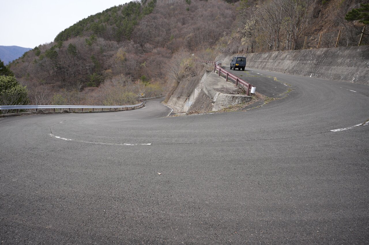 印象としては「いろは坂」のヘアピンカーブのような感じですが、他のクルマの気配がない所が大きく違います。
