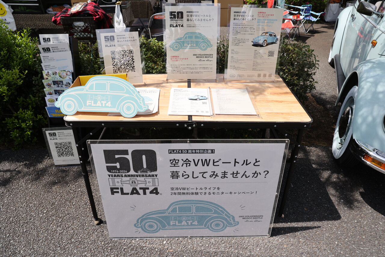 FLAT4の50周年企画「空冷VWビートルと暮らしてみませんか?」という企画で、モニター募集のためのお披露目はこのGARAGE Marketからスタート。