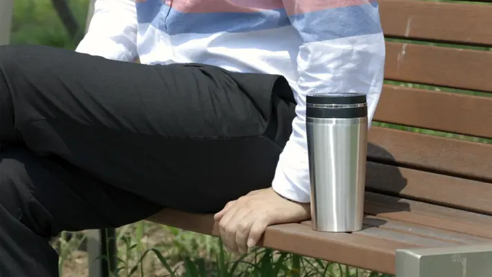 底部シリコンリングが走行中のビビり音をカットし、焦げつきや臭い移りも防止。タンブラーサイズかつ、熱が伝わりにくい仕様なので、車外喫煙所への持ち出しもOKです。