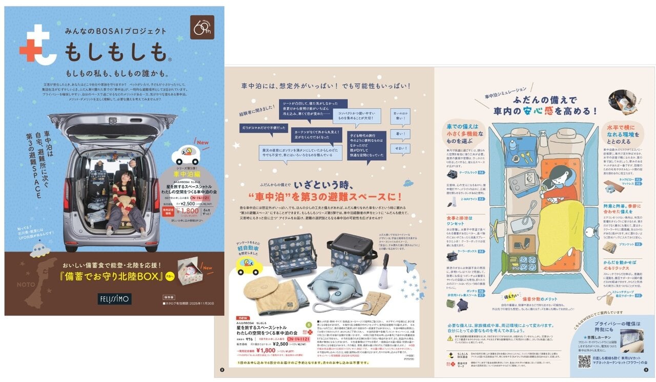 さまざまな防災プロジェクトを展開し、防災グッズの販売も行なっている、フェリシモの「みんなのBOSAIプロジェクトもしもしも」。災害時だけでなくアウトドアや日常で使えるものもあり、デザインにもこだわられています。