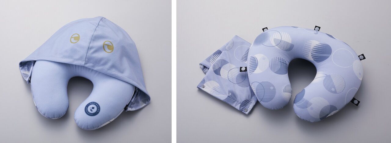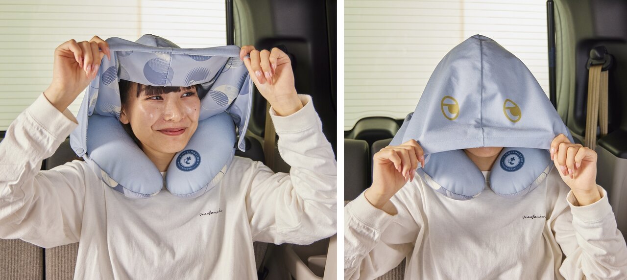フードにはかわいい目が描かれていて、被って寝ると宇宙人の気分が味わえそう。ネックピローも含めてデザインはリバーシブルなので気分に合わせて変えられます。