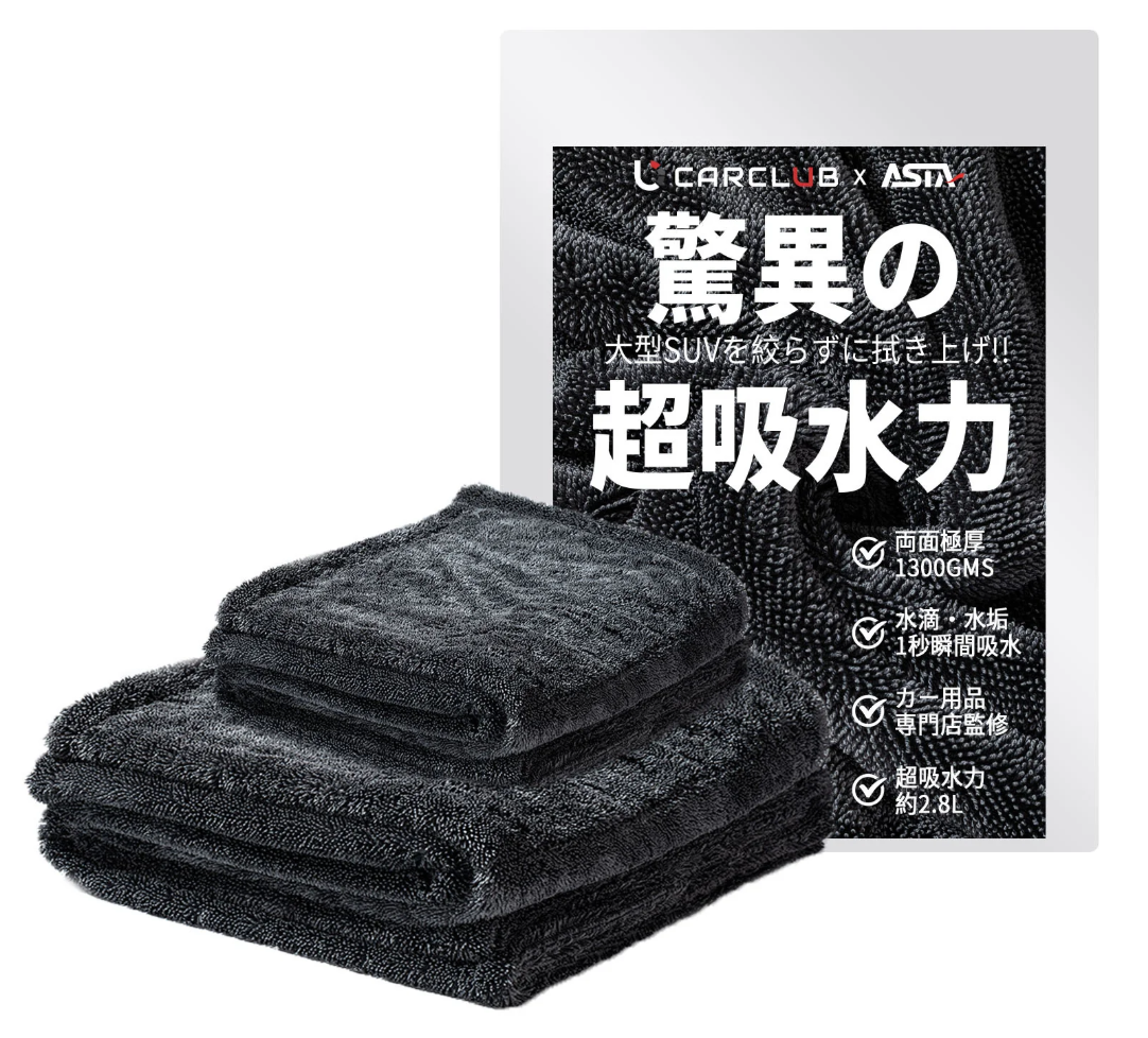 洗車の仕上がりを左右するのが、拭き上げ。「超吸水洗車タオル」は驚きの吸水力と大きめサイズで、大型SUVでも途中で絞ることなく拭き上げられます。超極細繊維を採用しているので、愛車も傷つきにくく速乾性にも優れています。