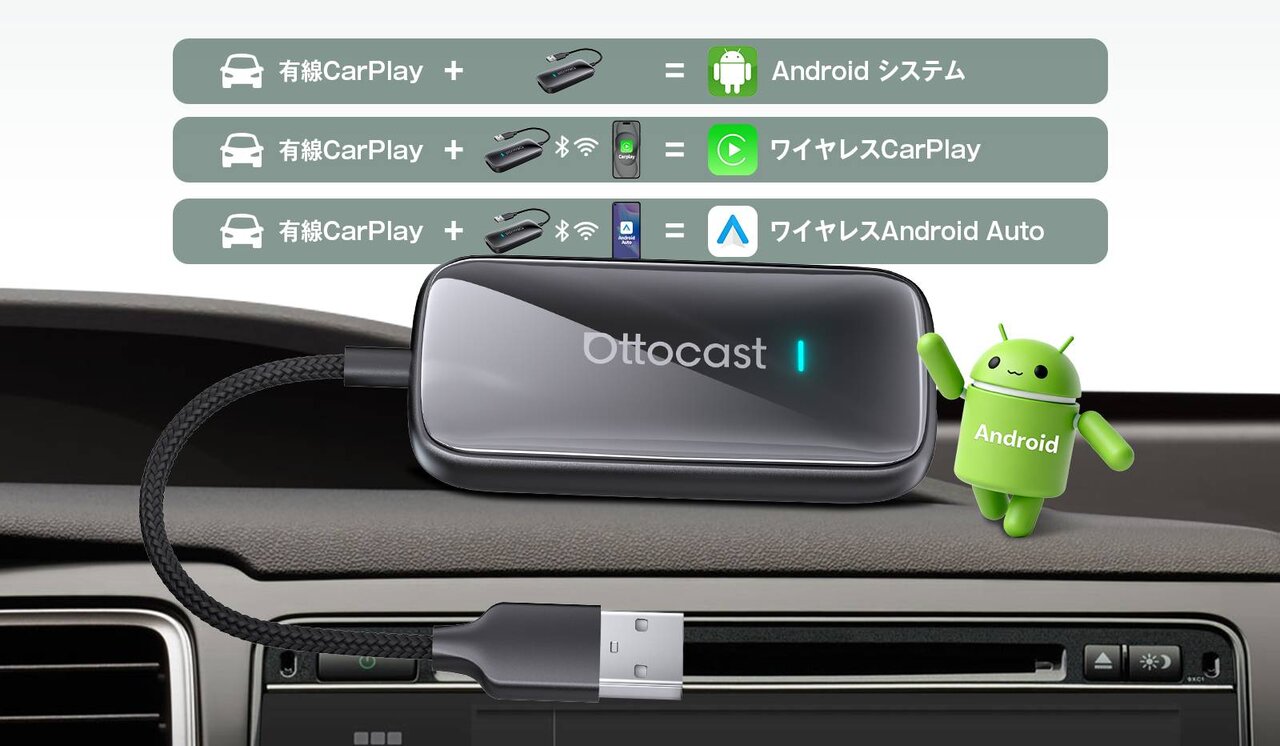 USBケーブルでカーナビに接続するだけで、Android化できるデバイス。Bluetooth 5.4、WiFi6に対応し、安定した動作が可能。Androidシステム、CarPlay、Android Autoが自在に切り替えられるから、端末を選ばないのがうれしい。カーナビ本体のタッチパネルを利用できるので、車内でスマホを扱うより操作性が高まるのではないでしょうか。
