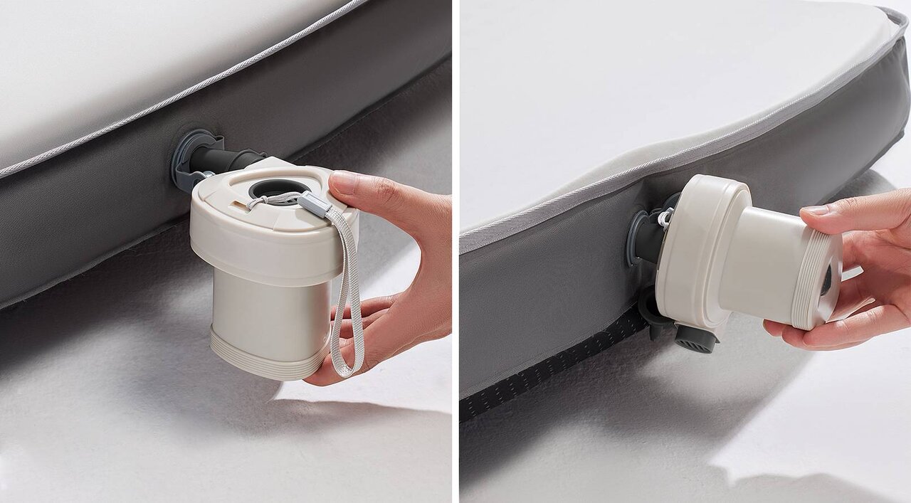 電動ポンプを使用して約2分で注入し、約40秒で排気可能なので、面倒な設置作業が簡単に行えます。車中泊では移動が長く、宿泊場所に到着したころには体力を消耗しがちなので、設営の負担が軽減されるのは大きなメリットといえるでしょう。