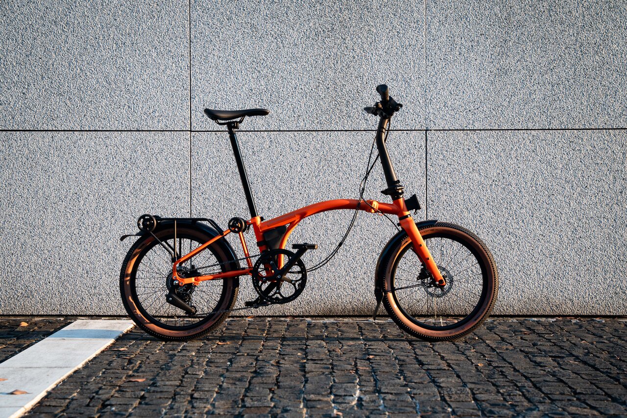 MTBのような悪路対応の折り畳み自転車「Brompton G Line」。20インチの大径ホイールに耐パンクタイヤに加えて、Brompton初の油圧ディスクブレーキを搭載したタフなオフロード仕様。カラーはアドベンチャーオレンジ、フォレストグリーン、レイルダストホワイトで、いずれも取り入れやすい色合いとなっています。
