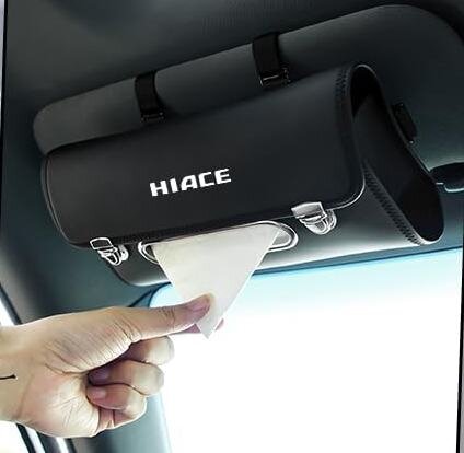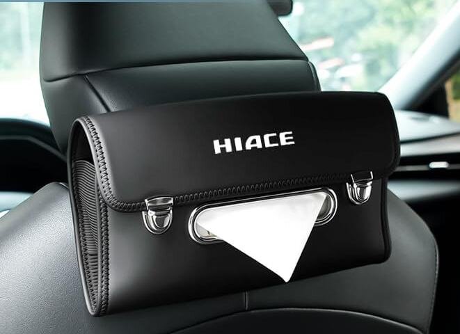 そんな筆者が見つけた、ハイエース専用のティッシュケース。上品なブラックレザー仕様で、車内の雰囲気が一気に格上げ。いつものティッシュが高級感あふれるインテリアに早変わり!