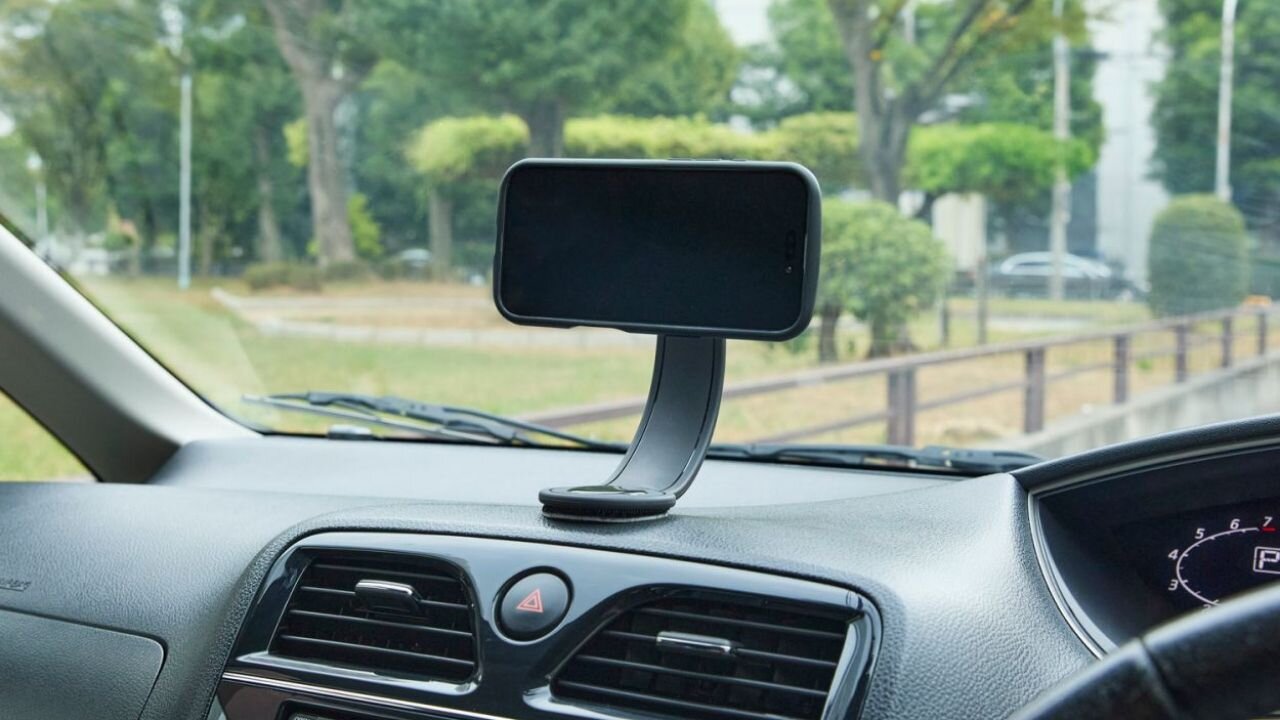 まずは「MAGKEEP 車載スマートフォンホルダー 粘着タイプ」からチェック。王道のダッシュボードに取り付けるタイプで、面ファスナーによってホルダーの脱着が簡単。ネック部分はフレキシブルに角度を変えられるため、スマホの角度を自由に調整できます。