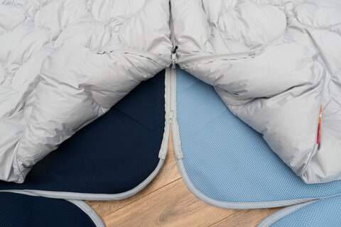 本体を収納すればクッションになり、衣類などを詰めれば枕にも変身。今回のリニューアルで、中綿の封入量が増加され、両サイドジッパー採用による連結にも対応しました。敷布団のカラーもネイビーとソランブルーに一新。車中泊で睡眠にこだわるならいい選択となりそうです。