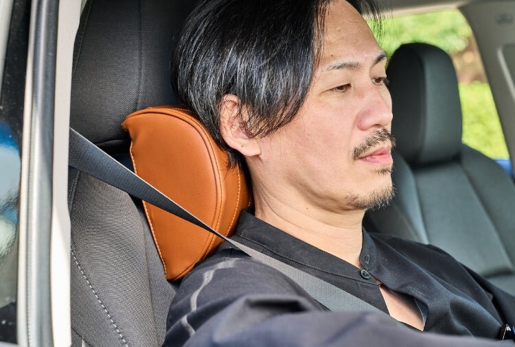 【運転席に装着】だいぶラク〜!首と肩を本気で支えてくれるレザーヘッドサポート