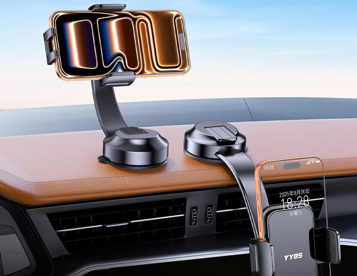 吸盤タイプのスマホスタンドは、時間が経つと粘着力が足りなくなり落ちてしまうことも。その点、YYBSの車載スマホホルダーは0.08MPaの強力真空ロック装置が用いられ、ダッシュボードやフロントガラスにしっかりと密着します。急発進や急ブレーキ、悪路走行といった過酷な条件下でも、ガタつかない安定感を手に入れられるはず。