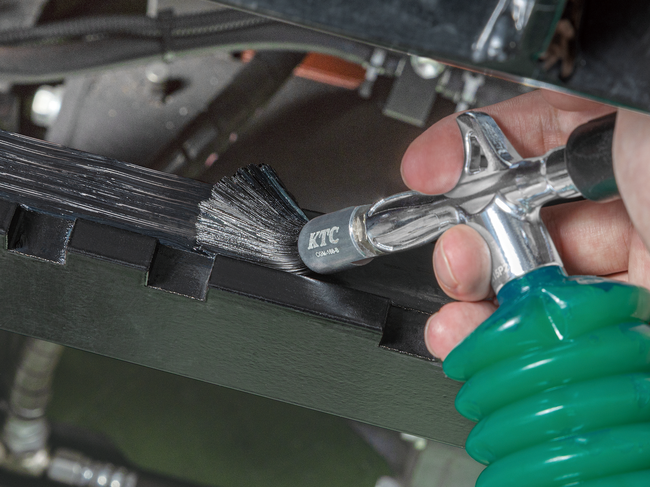 愛車の整備で欠かせないグリスアップだけれど、グリスは手につくと黒いしベタベタ。通常のハンドソープでは脂は取れず、きつい洗剤で手を洗うと肌が荒れて悩んでいた筆者。そんな時に見つけたのが、KTCの「ミニグリースガン専用ブラシ」。凹凸のあるクルマのチェーンやベアリング、ヒンジ部分もこのブラシで塗れば、手を汚さずにすみそうだ。