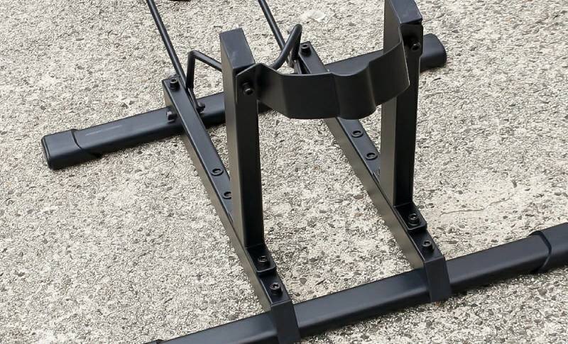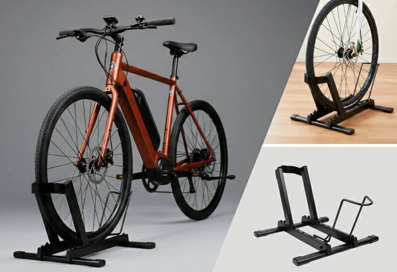 重量のあるE-bikeや電動アシスト自転車は、駐輪している最中に倒れてしまいがち。自宅でも安心して保管したいなら、押し込むだけでピタッと固定される安定型スタンドを導入すべし!