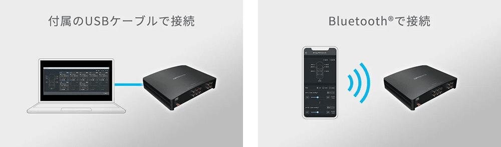 細かな調整はスマホアプリまたはPCソフトで操作可能。PC接続は付属USBケーブル、スマホはアプリをダウンロードしBluetoothで簡単接続。どちらも初心者が迷わず使えるわかりやすいユーザーインターフェースを採用。これなら内装カスタム初心者も扱えそうだ。
