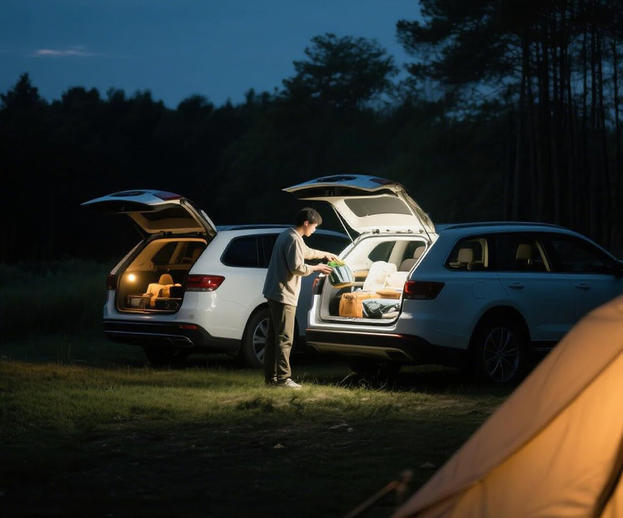 高輝度のLEDチップが搭載された、GZRUICAのトランクライトが美しい。トランクルームの隅々まで照らしてくれて、夜間の荷物の積み下ろしが圧倒的に楽に。キャンプや車中泊の夜の演出にもぴったりです。