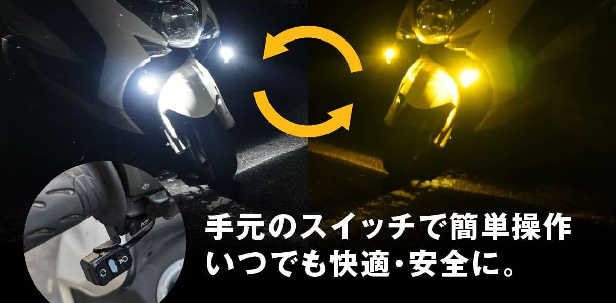 【車検OK】天候&排気量に合わせて調光!“2色”切替LEDフォグランプで快適ライド