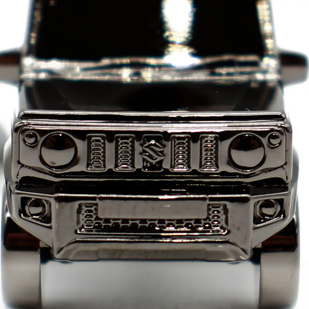 「SUZUKI JIMNY クロームメッキキーチェーン BLACK EDITION」は、人気のジムニーを立体的な3D造形で再現したキーリング。クロームメッキ仕上げのボディは、小さなサイズでありながら存在感バツグン。ジムニーならではの力強いフォルムを細部まで楽しめます。