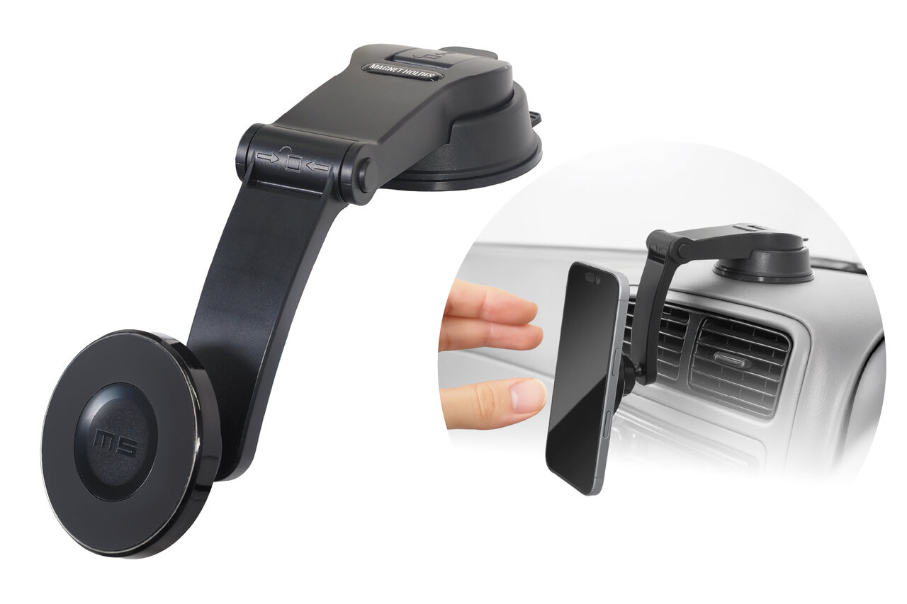 運転席で便利な「クルマ用マグネットスマホホルダー」もラインアップ。カーナビではなくスマホのマップ派の方には必須のアイテムですよね。ダッシュボードに真空ゲル吸盤で簡単に設置でき、スマホを置く際はマグネットの面に貼りつけるだけでセットできます。