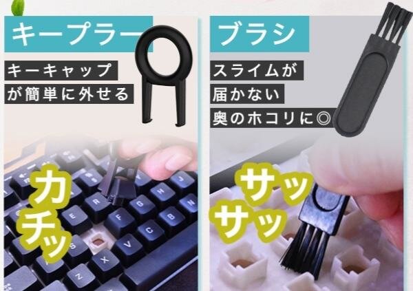 本体には専用のブラシとパソコンのキーボードを外して掃除できるキャップ外しツール付き。クルマはもちろん、ガジェット周りの掃除にも役立ちます。片付けや掃除のプロである整理収納アドバイザーが推奨しているのも納得。