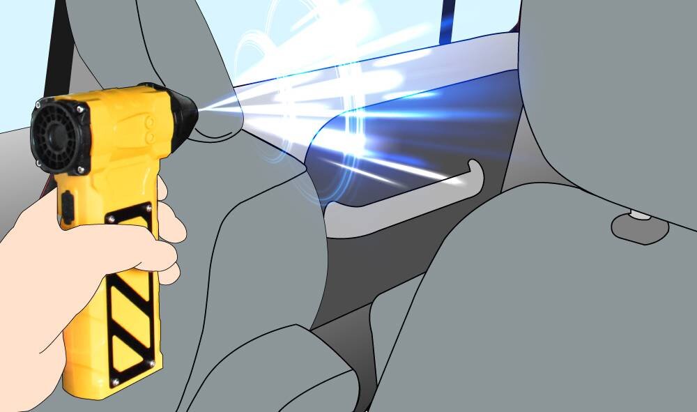 クルマの足元に溜まる砂や小石、シートのすき間に入り込んだホコリは、掃除機のノズルだけでは取り切れません。そこでも「充電式 ハンディ暴風機」があると便利。強めの風でシートの奥やフロアマットの下に潜んだゴミを表面に吹き上げ、掃除機でまとめて吸い上げると、細かな汚れまですっきりします。