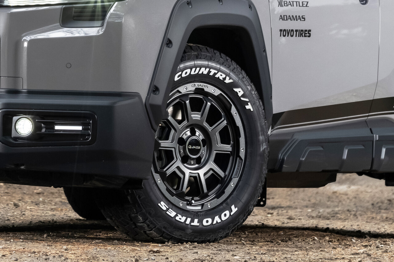 あえてインチダウンした17inホイールが、映えるオフロード感を強調。トヨタディーラー向け専用カラーが、高級感あるラギッドな輝きを放ちます。