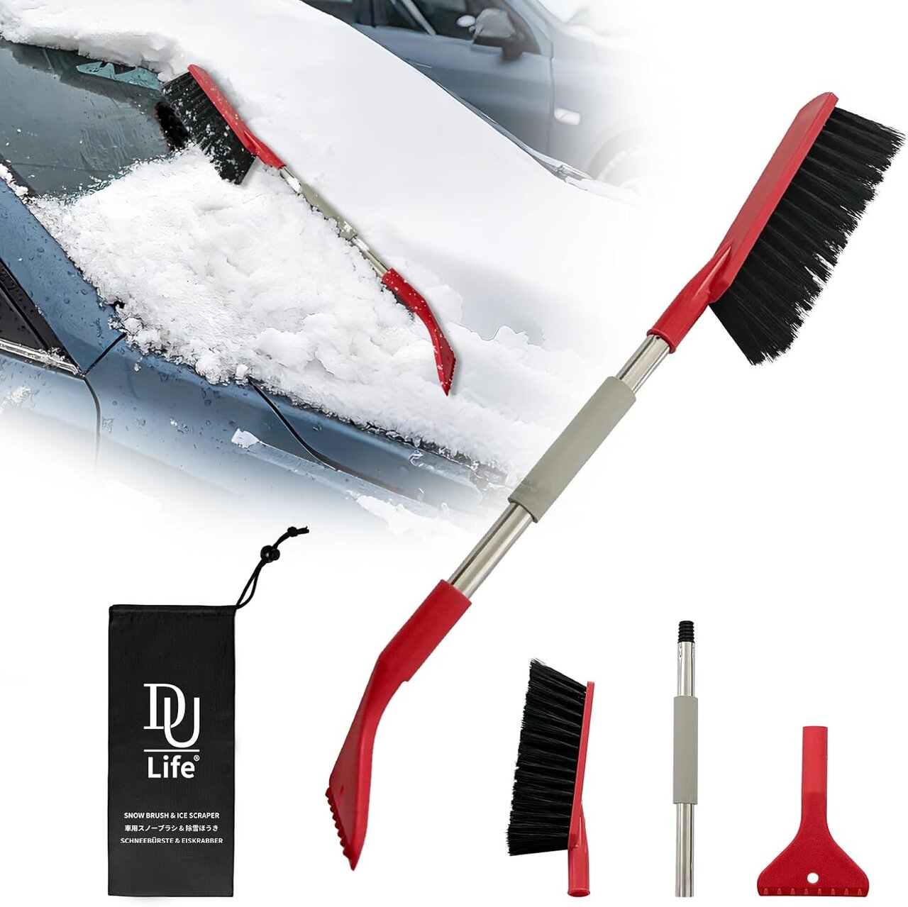 DU Lifeの「スノーブラシ」は、ブラシ+スクレーパーが1本にまとまっている2in1仕様。除雪ブラシとして屋根やボンネットに積もった雪をしっかり払い落とし、その後はスクレーパーにチェンジ。フロントガラスやミラーの氷・霜も丁寧に取り除くことができます。