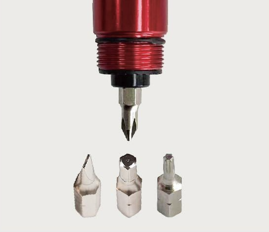 一つひとつ機能を見ていくとしましょう。まずドライバーは隠し要素となり、ハンマーヘッドを回して外すと出現する仕組みです。ドライバーピットはマグネット式でPH1、SL4.0、H4.0、T10の4種類が付属しています。