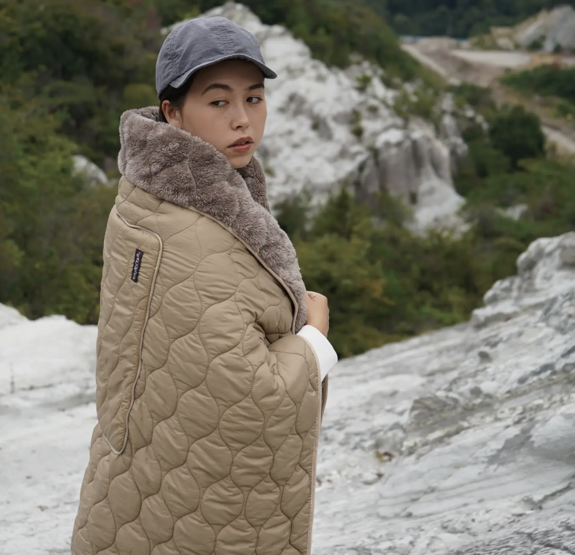 わずか1分で約18度も温まる体温リサイクルシステムを採用。体温を効率よく蓄えて放熱してくれるので、エアコンを使えない車中泊などのシーンでも心地よく過ごせます。厚手でボリュームがあるものの、重量は638gと軽量。長時間肩にかけていても疲れにくく、持ち運びも楽ちんです。